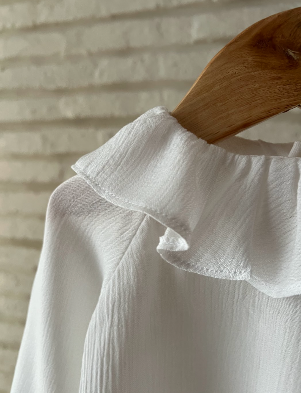 Camisa con cuello confeccionada en bambula liviana, con botones en la espalda.