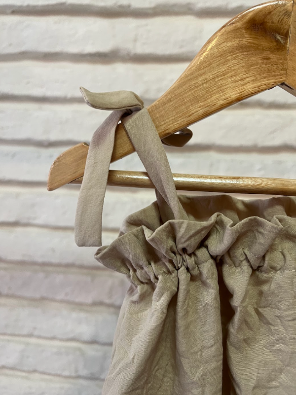 Enterito pescador confeccionado en poplin crash, con lacitos en los hombros y su largo arriba de la rodilla. Es una prenda super fresquita y liviana.Este materia no se plancha.